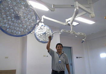 Instalación de lámparas ciáliticas y columna de gases pre-instalación e instalación del equipo